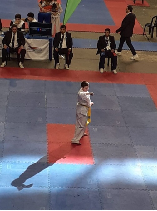 Los chicos no sólo participaron del Torneo sino que además obtuvieron Medalla Dorada, Hans en formas y combates, mientras que Calanchini en combate de unión.